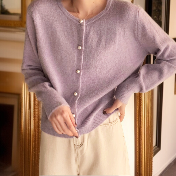 여성 니트 가디건 긴팔 솔리드 상의 진주 버클 여성 봄가을 라운드 니트 가디건 부드러운 니트 코트